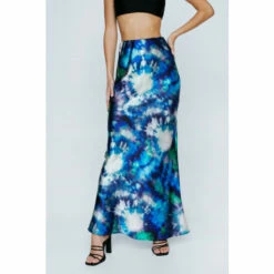 NastyGal Petite Tie Dye Printed Satin Bias Maxi Skirt For Female
