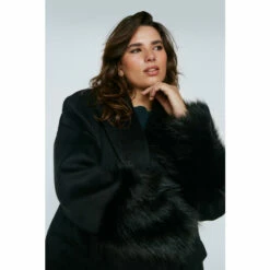 NastyGal Plus Fur Trim Wool-blend Tailored Smart Coat For Female