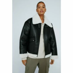 NastyGal Plus Reversible Faux Leather Borg Lined Coat For Female