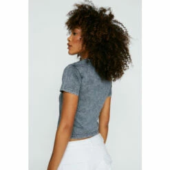 Get on top. Great for styling with a mini cargo skirt. Acid Wash Fitted T-Shirt Loose Fit Silhouette Cropped Length Crew Neckline Jersey Fabric Acid Wash Model wears size M (US size 6/UK size 10). This garment is READY FOR THE FUTURE. The Boohoo Group are members of Better Cotton. By choosing our cotton products, you’re supporting Boohoo Groups investment in Better Cotton’s mission. This product is sourced via a system of mass balance and therefore may not contain Better Cotton. Learn more at Better Cotton. Find out more about our sustainability guidelines and goals.