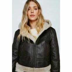 Coming in to land. Feel cozy in our borg lined aviator jacket, with hood feature and warm lining. Borg Lined Hooded Shrunken Aviator Jacket Aviator Jacket Hood Featture Borg Lined Relaxed Fit Teddy Lining Model wears a size M (US size 6/UK size 10).