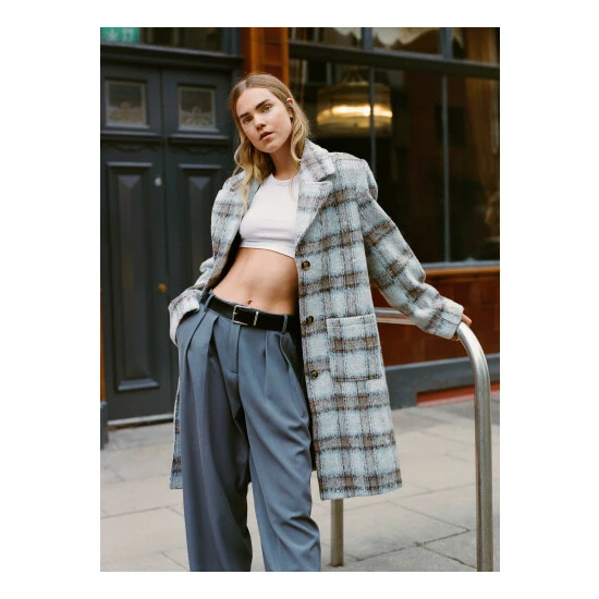 Style: Wool Look CoatDesign: CheckFabric: Wool LookLength: LonglineNeckline: CollaredSleeve Length: Long Sleeve
