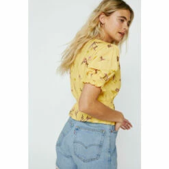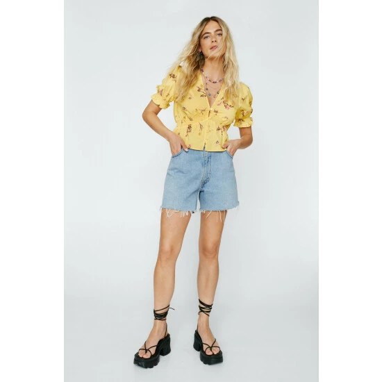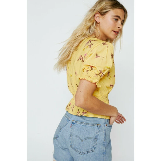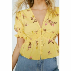 Style: Crop TopDesign: FloralFabric: WovenLength: CroppedNeckline: V NeckSleeve Length: Short Sleeve