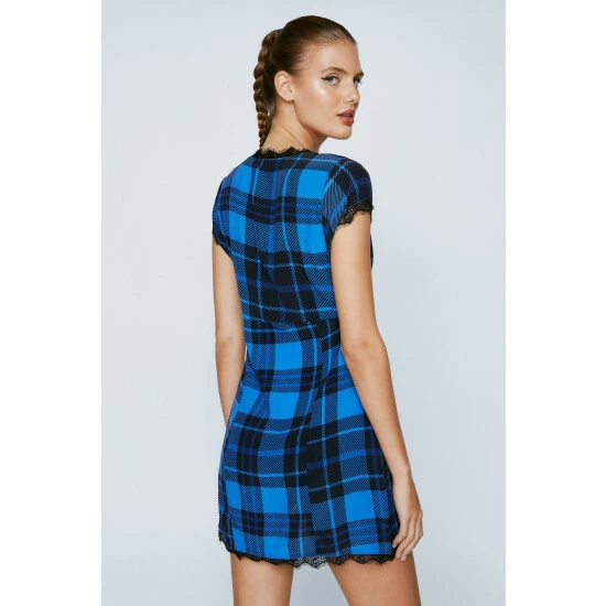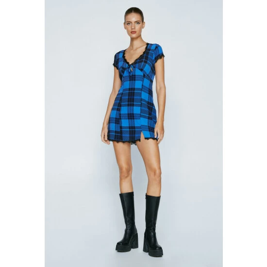 Style: Mini DressDesign: CheckFabric: WovenLength: MiniNeckline: V NeckSleeve Length: Cap Sleeve