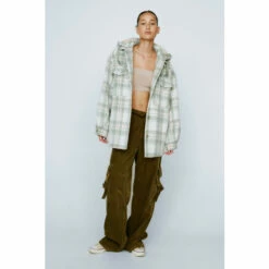 You’ve got layers. Check shacket, perfect for changing weather and layering outfits. Checked Shacket Button Fastening Pocket Detail Hooded Design Fuzzy Material Wear with wide jeans and a bandeau for a cute layering moment, or over a sweater for an extra cozy Winter outfit. Model wears a size M (US size 6/UK size 10).