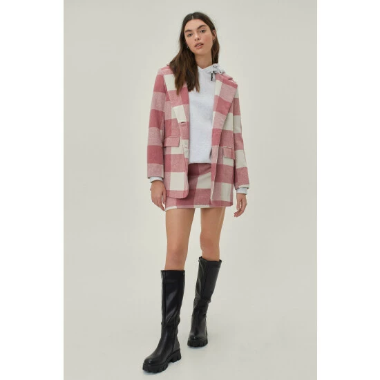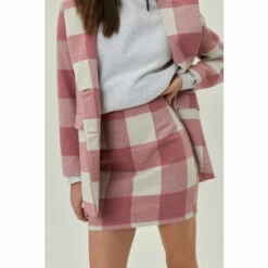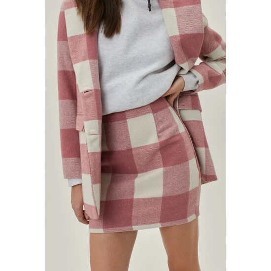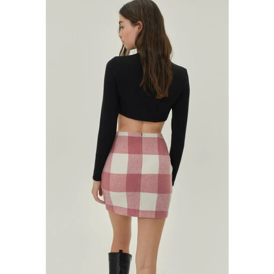 You’ve met your match. This skirt comes in faux wool and features a high waisted, mini silhouette, zip fly closure, and check print throughout. Style yours with a tailored blazer and faux leather knee high boots. Style: Check Print Faux Wool Pelmet Mini Skirt Fit: Loose Length: Mini Occasion: Casual Model is 5’8″ and wears a size M (US size 6/UK size 10).