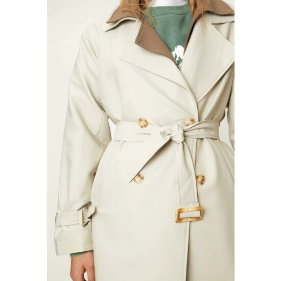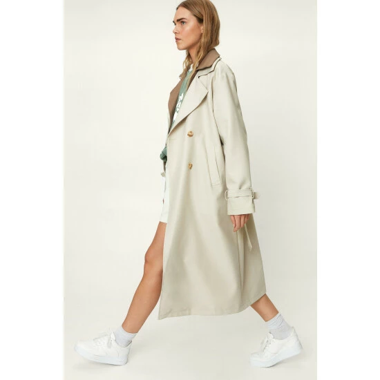 Style: Trench CoatDesign: Colour BlockFabric: WovenLength: RegularSleeve Length: Long Sleeve