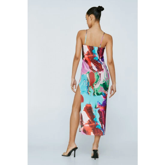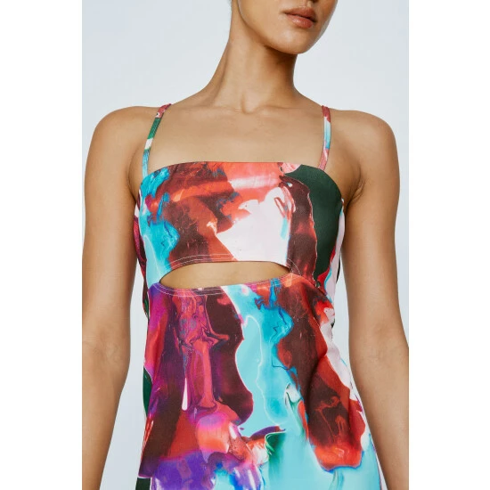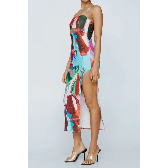 Cut Out Printed Midi Dress