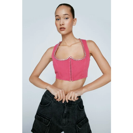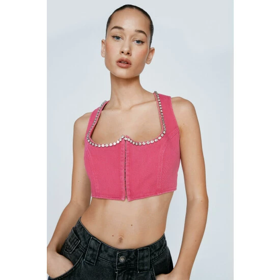 Main: 100% Cotton. Trim: Diamante. Wash With Similar Colours. Model Wears UK Size 10.
