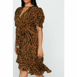 Looking to pounce on an animal print midi dress for your next wild night out? This frill wrap dress has a fierce asymmetric hem and flattering wrap style. Team this ruffle skater dress with your sharpest heels. Shop more puff sleeve wrap dress styles in our full collection.