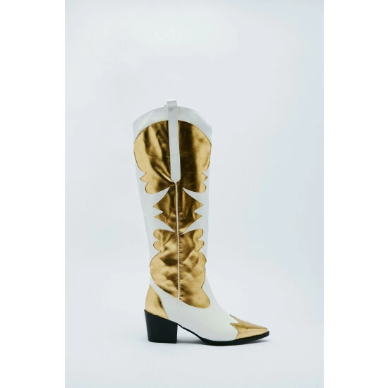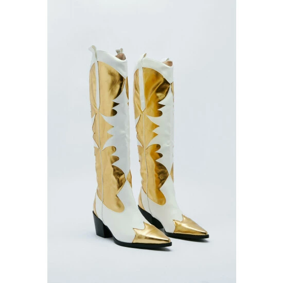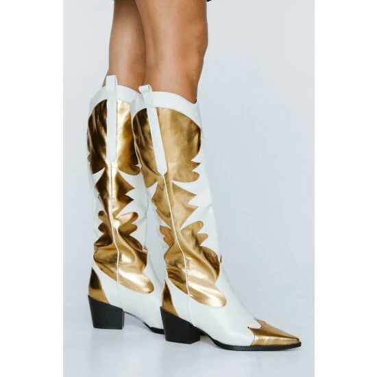 Style: Western BootsDesign: PlainFabric: Metallic