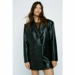 Style: BlazerFabric: Faux LeatherLength: RegularNeckline: CollaredSleeve Length: Long Sleeve