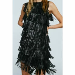Make moves. Our faux leather fringed mini dress is as edgy as it is fun. Faux Leather Fringed Mini Dress Faux Leather Dress Fringe Dress Sleeveless Dress High Neck Model wears a size M (US size 6/UK size 1).