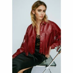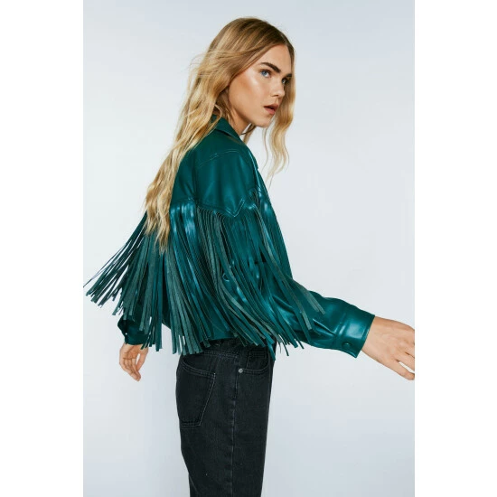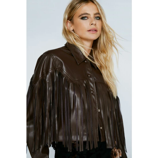 Style: Western JacketFabric: Faux LeatherLength: CroppedNeckline: CollaredSleeve Length: Long Sleeve