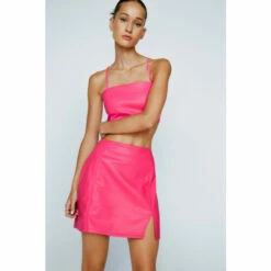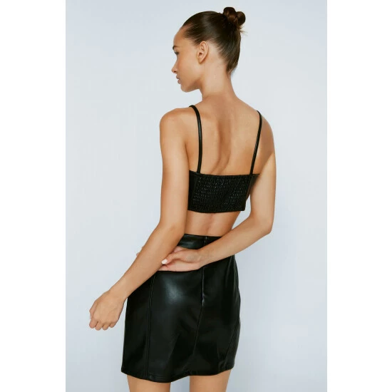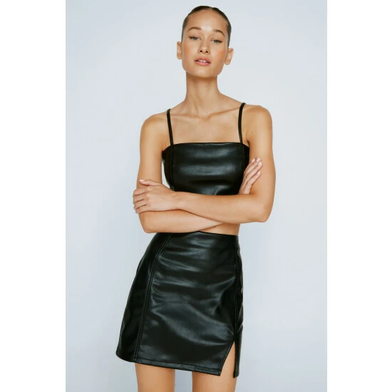 Style: Mini SkirtDesign: PlainFabric: Faux LeatherLength: Mini
