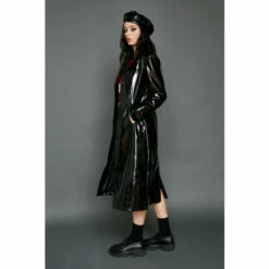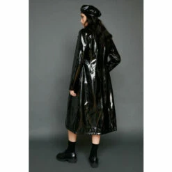 Elevated outer layers. Our faux vinyl longline coat will have you feeling warm while looking great. Style out and about in the cold months. Faux Vinyl Longline Coat Faux Vinyl Coat Longline Design Collar Detail Popper Button Fastening Model wears a size M (US size 6/UK size 10).