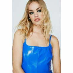 Style: Mini DressFabric: VinylLength: MiniNeckline: SquareSleeve Length: Strappy