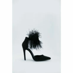 Step up to it. Feel fierce in our diamante court heels, with a fun feather trim and sparkling material. Pairs well with mini dresses and oversized blazers for a night out look that will turn heads. Feather Trim Diamante Court Heels Diamante Court Heels Feather Trim Diamante Detailing Stiletto Heel Pointed Toes Zip Fastening in Back