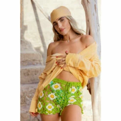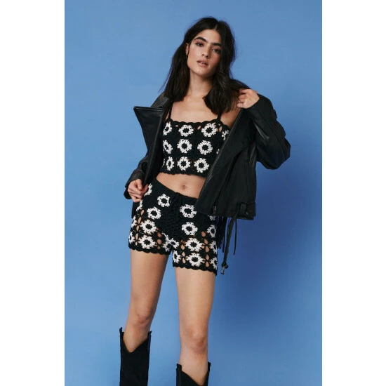 Style: Flippy ShortsDesign: FloralFabric: CrochetLength: Short