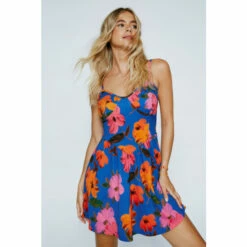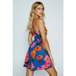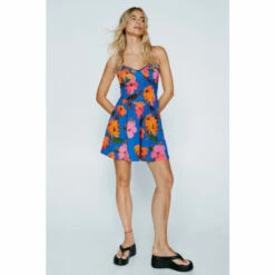 Blooming boldly. Perfect to pair with flatform thong sandals, and beaded jewelry. Floral Print Corset Style Mini Dress Mini Length Fitted Bodice Flared Skirt Corset-Style Details Sweetheart Neckline Slim Adjustable Straps All-Over Floral Print Textured Material Comfortable Woven Fabric Model wears size M (US size 6/UK size 1).