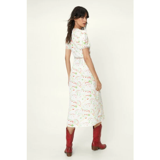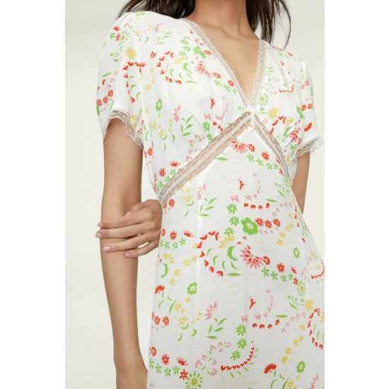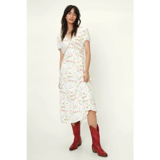 Style: Tea DressDesign: FloralFabric: WovenLength: MidiNeckline: V NeckSleeve Length: Short Sleeve