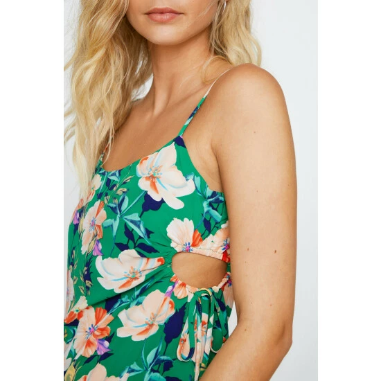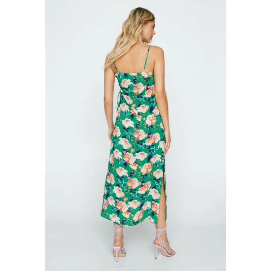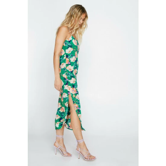 Style: Slip DressDesign: FloralFabric: WovenLength: MidiNeckline: V NeckSleeve Length: Strappy