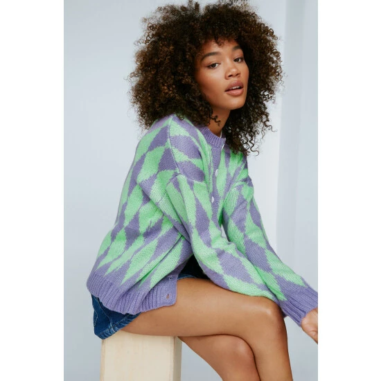 Style: Crop CardiganDesign: All Over PrintFabric: KnittedLength: CroppedNeckline: CrewSleeve Length: Long Sleeve