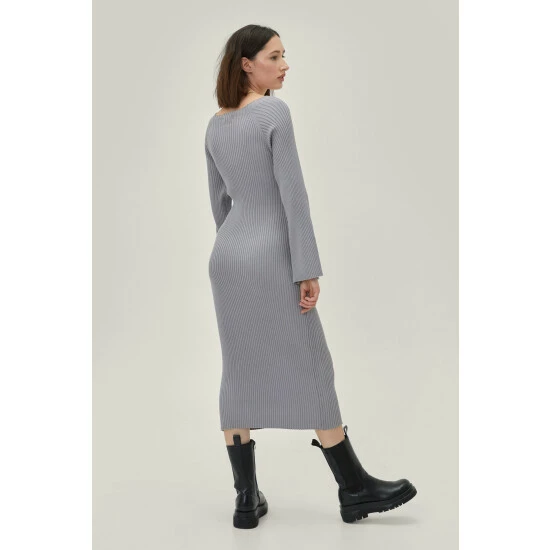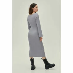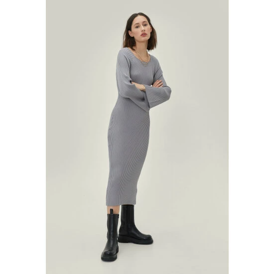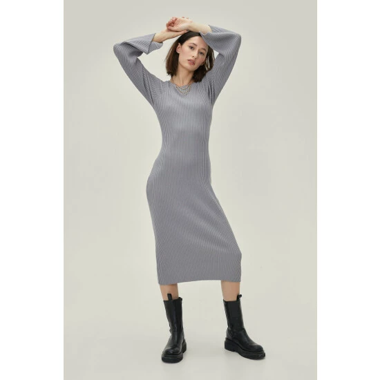 Style: Bodycon DressDesign: PlainFabric: KnittedLength: MidiNeckline: CrewSleeve Length: Long Sleeve