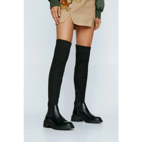 Best boots forward. Our knitted chunky boots look great with skirts and shorts, with added comfort factor. Knitted Over The Knee Chunky Boots Chunky Boots Over The Knee Boots Knitted Boots Inner Leg Zip Fastening Round Toes Chunky Sole