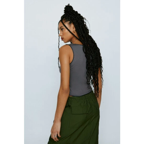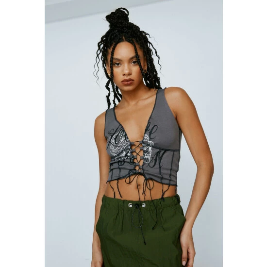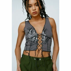 Lace Up Contrast Stitch Graphic Vest
