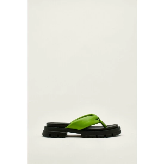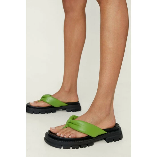 Walk this way. Great for styling with dresses or jeans – they’re super versatile, no matter where you’re headed. Leather Cleated Toe Thong Sandals Chunky Cleated Sole Round Toe Soft Toe Post Leather Material