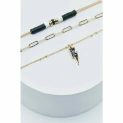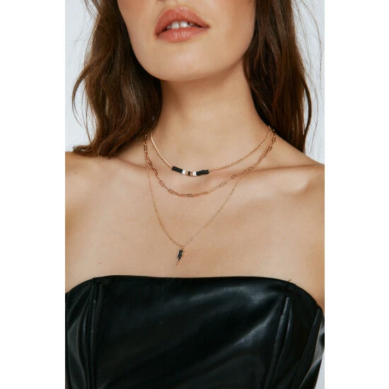 Layer up. Our layered necklace with lightning bolt charm and beading is perfect for adding effortless detail to any look. Lightning Bolt Drop Layered Necklace Layered Necklace Chain Necklace Moon Charm Adjustable Length