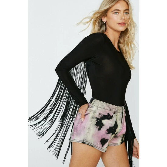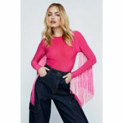 NastyGal Petite Tinsel Fringe Detail Tiered Jacket For Female