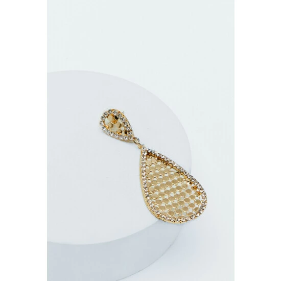 Be bold. Ideal for finishing off your going out look. Mesh Diamante Detail Drop Earrings One Size Statement Style Teardrop Design Mesh Detail Diamante Embellishments Metallic Effect Hardware Post Closures Bullet Clutch Backs