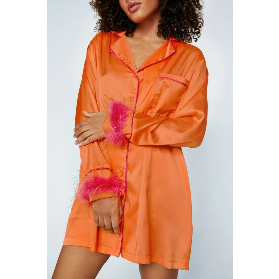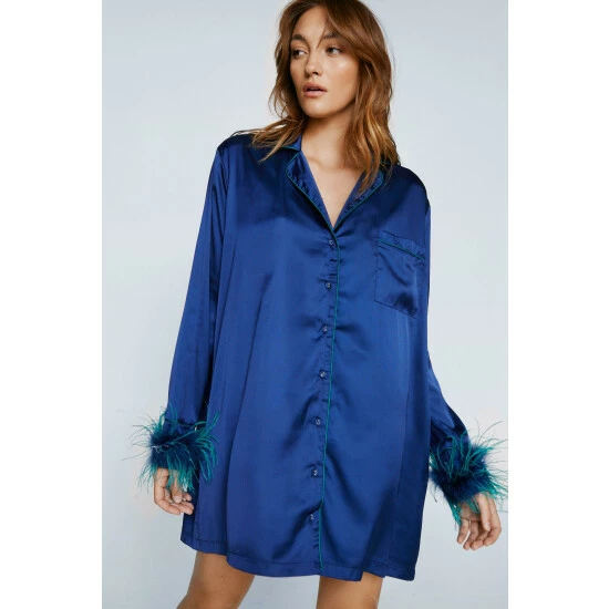 In your dreams. Get comfy in our feather cuffed night shirt. Ombre Feather Cuff Night Shirt Night Shirt Feather Cuffs Button Up Night Shirt Feather Feature Model wears a size M (US size 6/UK size 10).