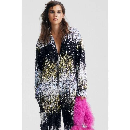 Shine like a diamond. Our sequin boilersuit is a glitzy yet super comfortable evening look. Ombre Sequin Relaxed Boilersuit Sequin Boilersuit Relaxed Boilersuit Ombre Sequin Effect Zip Up Boilersuit Zip Fastening Relaxed Fit Model wears a size M (US size 6/UK size 10).