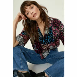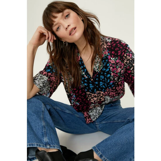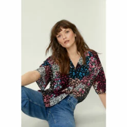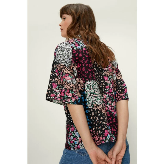 Style: BlouseDesign: FloralFabric: WovenLength: CroppedNeckline: CollaredSleeve Length: Short Sleeve