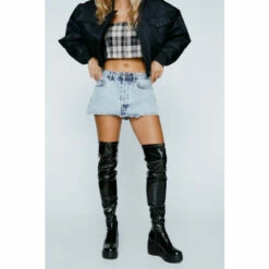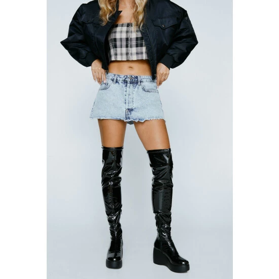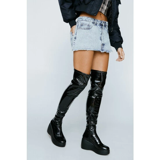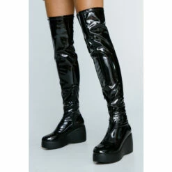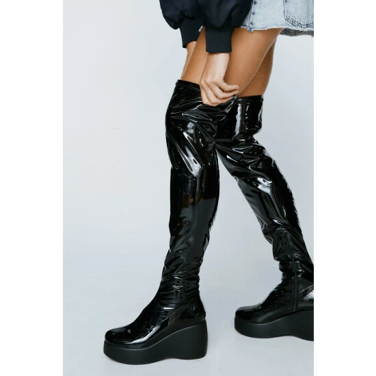 Style: Over The Knee BootsDesign: PlainFabric: Patent