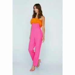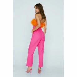 Style: Straight Leg JumpsuitDesign: PlainFabric: WovenLength: RegularNeckline: BandeauSleeve Length: Sleeveless