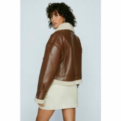 Catching flights. Our petite aviator jacket with buckle detail looks great over a crop top and skirt or jeans. Petite Buckle Detail Aviator Jacket Aviator Jacket Buckle Jacket Faux Fur Trim Button and Zip Fastening Pocket Detail Model wears a size M (US size 6/UK size 10)