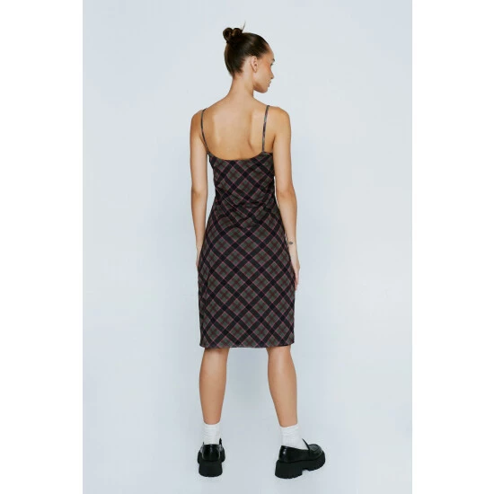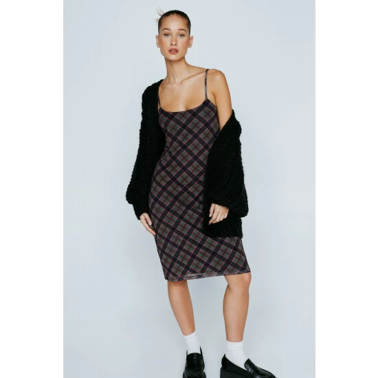 Style: Midi DressDesign: CheckFabric: MeshLength: MidiNeckline: BandeauSleeve Length: Strappy