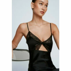 Slip into it. Feel femme in our satin mini dress, made in high quality stin fabric, with flirty lace detailing and front cut out, as well as a sexy open back, and a flattering fit and flare silhouette. Pairs well with strappy heels and a sparkly clutch bag for a failsafe night out look, whether you’re hitting up a party or nearby dancefloors. Petite Lace Detail Satin Mini Dress High Quality Satin Fabric Feminine Lace Design Flirty Cut Out Details Sweetheart Neckline Model wears a size M (US size 6/UK size 10).