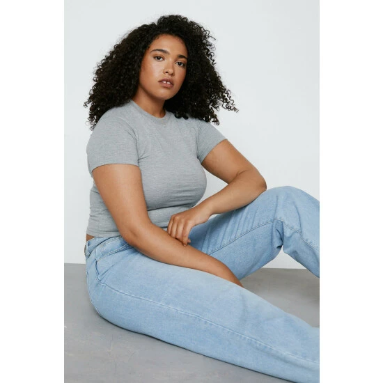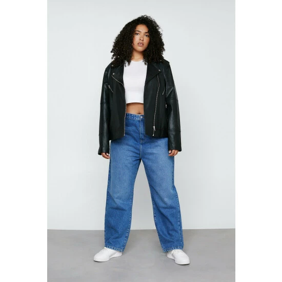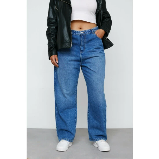 A true closet staple. Style with a T-shirt, moto jacket, and sneakers. Plus Size Organic Straight Leg Denim Jeans Straight Leg Design Relaxed Fit High Waisted Style Medium Width Waistband Rounded Pockets on Front Belt Loops Button Closure on Front Utility Pockets on Back Model wears a size L (US size 12-14/UK size 16-18). SKU: #BGG01793-1 This garment is READY FOR THE FUTURE. It is made with organic cotton. Find out more about our sustainability guidelines and goals.