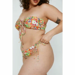 Bring flowers. Team with a bucket hat and your favorite slide-on sandals. All Things Considered by Nasty Gal is our collection of sustainable pieces each thoughtfully considered and crafted with the world in mind. Plus Size Recycled Floral Print Bandeau Bikini 2 Piece Set All-Over Floral Print Strapless Bikini Top Flattering Ruched Effect Keyhole Detail Tie Front Accent Sweetheart Neckline Matching Bikini Bottoms Low Rise Design High Leg Silhouette Side Tie Closures Medium Bottom Coverage Model wears a size L (US size 12-14/UK size 16-18).