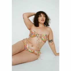 Bring flowers. Team with a bucket hat and your favorite slide-on sandals. All Things Considered by Nasty Gal is our collection of sustainable pieces each thoughtfully considered and crafted with the world in mind. Plus Size Recycled Floral Print Bandeau Bikini 2 Piece Set All-Over Floral Print Strapless Bikini Top Flattering Ruched Effect Keyhole Detail Tie Front Accent Sweetheart Neckline Matching Bikini Bottoms Low Rise Design High Leg Silhouette Side Tie Closures Medium Bottom Coverage Model wears a size L (US size 12-14/UK size 16-18).