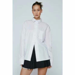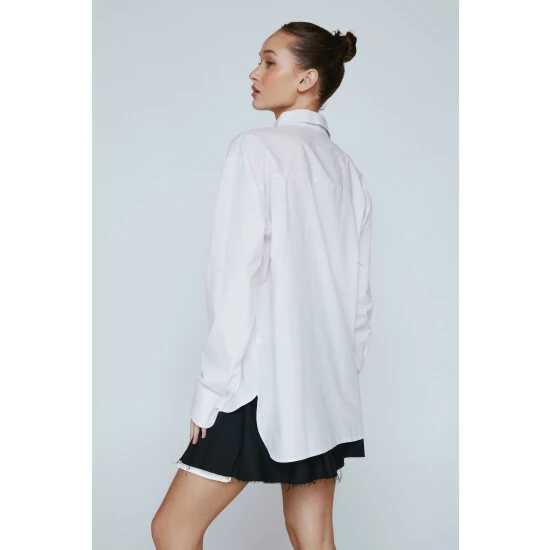 Closet staple alert. Feel fancy and elevate your everyday looks in our classic poplin relaxed shirt. Pair with mini skirts or pants, or layer under sweaters and vests for a timeless layering moment. Poplin Relaxed Shirt Relaxed Shirt Relaxed Fit Button Fastening Classic Button Up Model wears a size M (US size 6/UK size 10).