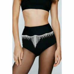 A coordinating moment. Our bralette and knicker set looks great when layered as part of an outfit or when worn solo. Premium Bandage Bralette And Knicker Embellished Set Bralette And Knicker Set High Waisted Knickers Diamante Detailing Square Neck Bralette Zip Fastening in Back Model wears a size M (US size 6/UK size 10).