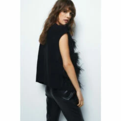 Ruffle some feathers. Style our faux feather knitted gilet with a crop and leather pants for an edgy layered look. Premium Faux Feather Knitted Gilet Knitted Gilet Faux Feather Design Knitted Fabric Relaxed Fit Sleeveless Design Model wears a size M (US size 6/UK size 10).