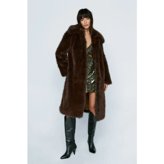 Style: Faux Fur CoatFabric: Faux FurLength: LonglineNeckline: CollaredSleeve Length: Long Sleeve