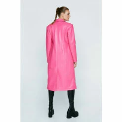 Wrap up. Our premium faux leather longline coat gives a streamlined look, and will have you feeling super sleek. Style over your favorite cold weather looks. Premium Faux Leather Longline Coat Faux Leather Coat Longline Coat Popper Button Fastening Collar Feature Pocket Addition Model wears a size M (US size 6/UK size 10).